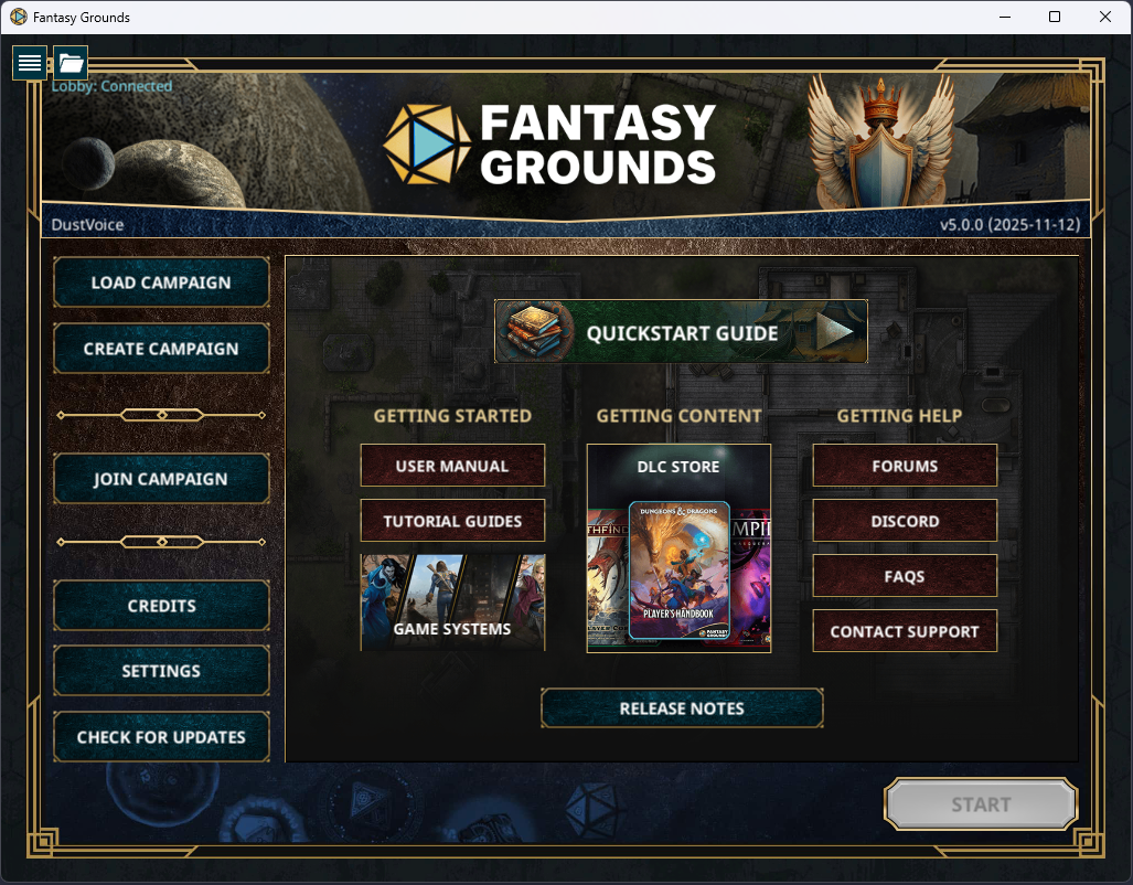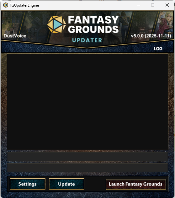 - You should be welcomed by the Updater upon launch. If you used the Fantasy Grounds - ELI5, make sure to launch it via the Fantasy Grounds VTT Updater shortcut, not Fantasy Grounds VTT.