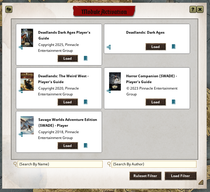 This will present you with a choice of modules the GM has activated for the campaign. But caution! This doesn’t mean you should blindly activate everything! As I said, ask your GM which items to Load! This will be remembered upon reconnects, so you only need to do it once