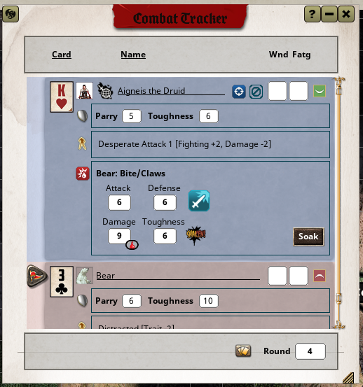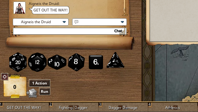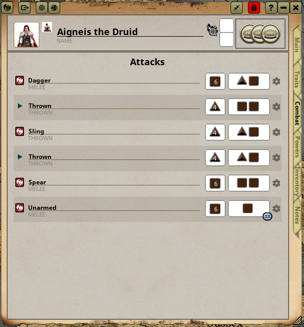 - Drag onto incoming/outgoing Attack/Damage in the Combat Tracker to reroll/soak