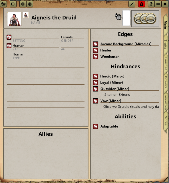 - And finally your Bennies. You can ^5ae7b1