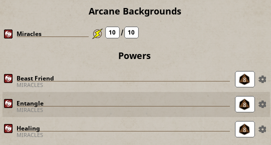 - When you want to use a Benny to regain Power Points, simply drag it on the appropriate Arcane Background title
