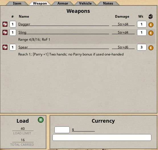 If you’re missing an attack in this list, make sure the Weapon in your Fantasy Grounds - ELI5 is actually equipped!