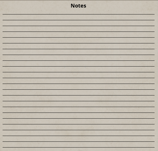 - Space for any notes you want to take for your Character