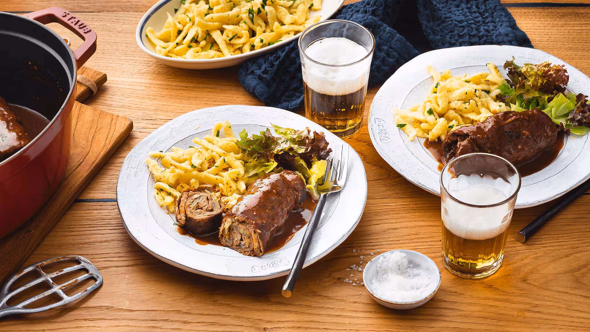 Rouladen gehören einfach zum Soulfood! Mit unserem REWE Rezept zauberst du saftige Rinderrouladen klassisch nach Hausfrauenart für deinen nächsten Sonntagsbrunch.