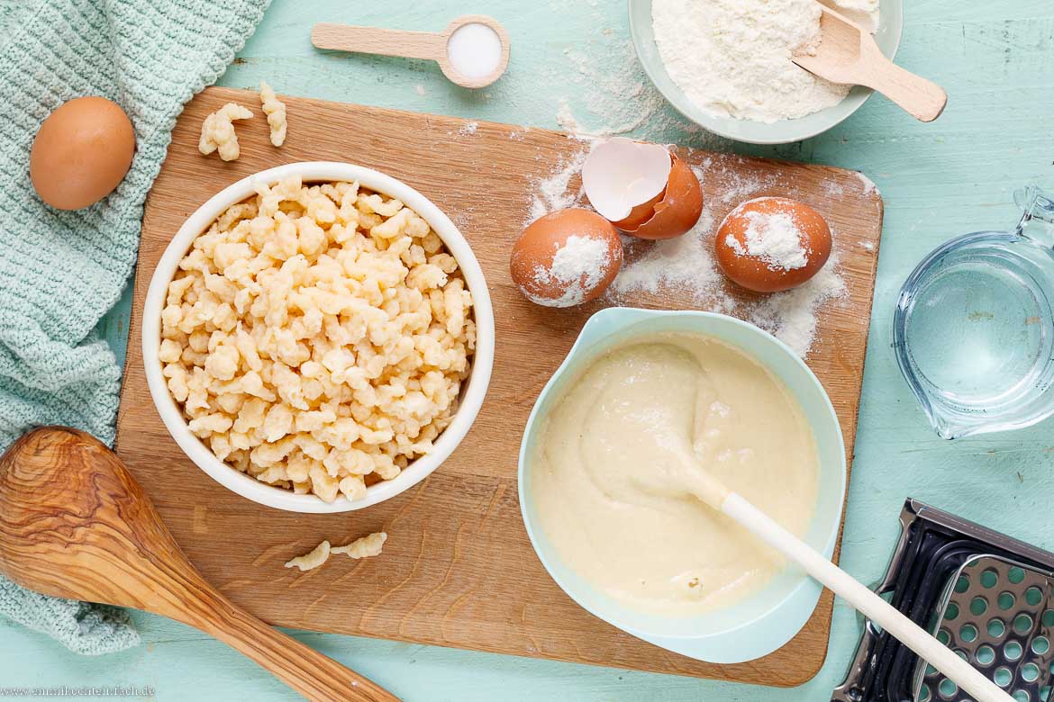 Das einfache, gelingsichere Rezept für Omas Spätzleteig. Ein Spätzle Rezept nach süddeutscher Tradition. Spätzle selber machen ganz einfach.